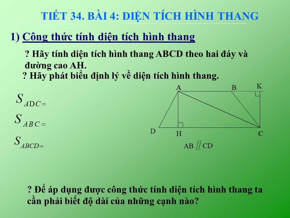 Hình học - Tiết 34 - Diện tích hình thang